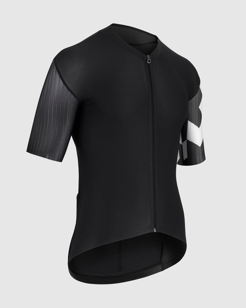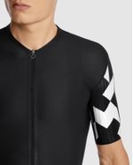 Das EQUIPE RS S11 Trikot verfügt über ein neues Material an den Ärmeln: Dieses Kompressionsmaterial ist leichter als seine Vorgänger und schmiegt sich dennoch wie eine zweite Haut an. Darüber hinaus bietet die strukturierte Oberfläche des Materials in aggressiven Fahrpositionen einen aerodynamischen Vorteil, indem sie den Luftwiderstand an der windanfälligsten Körperpartie reduziert. Der Jerseykörper besteht aus dem gleichen miniCheck Tex-Gewebe wie sein Vorgänger: Dieses komfortable, ultraleichte und hoch atmungsaktive Material bietet eine stützende Muskelkompression. Am hinteren Saum sorgt die neue PILtec Plug-In-Technologie für sicheren Halt. Diese kombiniert einen ultraleichten Stoffstreifen mit Silikon-Mikropunkten, um das Design bei Anstiegen, Sprints und Kurven zu stabilisieren – selbst bei Nässe. Kombinieren Sie es mit der EQUIPE RS SCHTRADIVARI S11 Bib-Shorts für intensive Fahrten bei warmem Wetter. Unser im WorldTour-Einsatz bewährtes Kurzarm-Renntrikot zeichnet sich durch einen aerodynamischeren Schnitt im Armbereich aus. Dieses neue Design ist atmungsaktiver und leitet Wärme besser ab, bei gleichzeitig reduziertem Gewicht. VERWENDETE MATERIALIEN: miniCheck Tex, ein dreidimensionales, offenmaschiges Strickgewebe, ist ein hoch atmungsaktives und dehnbares Material mit UPF 25 Sonnenschutz und der charakteristischen Jersey-Textur von ASSOS auf der Vorderseite. Die Taschen werden durch ein Rückenteil aus atmungsaktivem Stabilizer V11-Gewebe gesichert. Dieses Material leitet Wärme hervorragend ab und ist so leicht (UPF 15), dass wir die Verwendung von Sonnencreme darunter empfehlen. Es verbessert außerdem die Stabilität und verhindert, dass sich das Design bei vollen Taschen zusammenknüllt oder verschiebt. Die Ärmel bestehen aus dem neuen 550CX-Kettengewirke, das UPF 35 und Muskelunterstützung bietet. Dieses Zwei-Wege-Stretchmaterial verfügt über natürliche aerodynamische Eigenschaften.